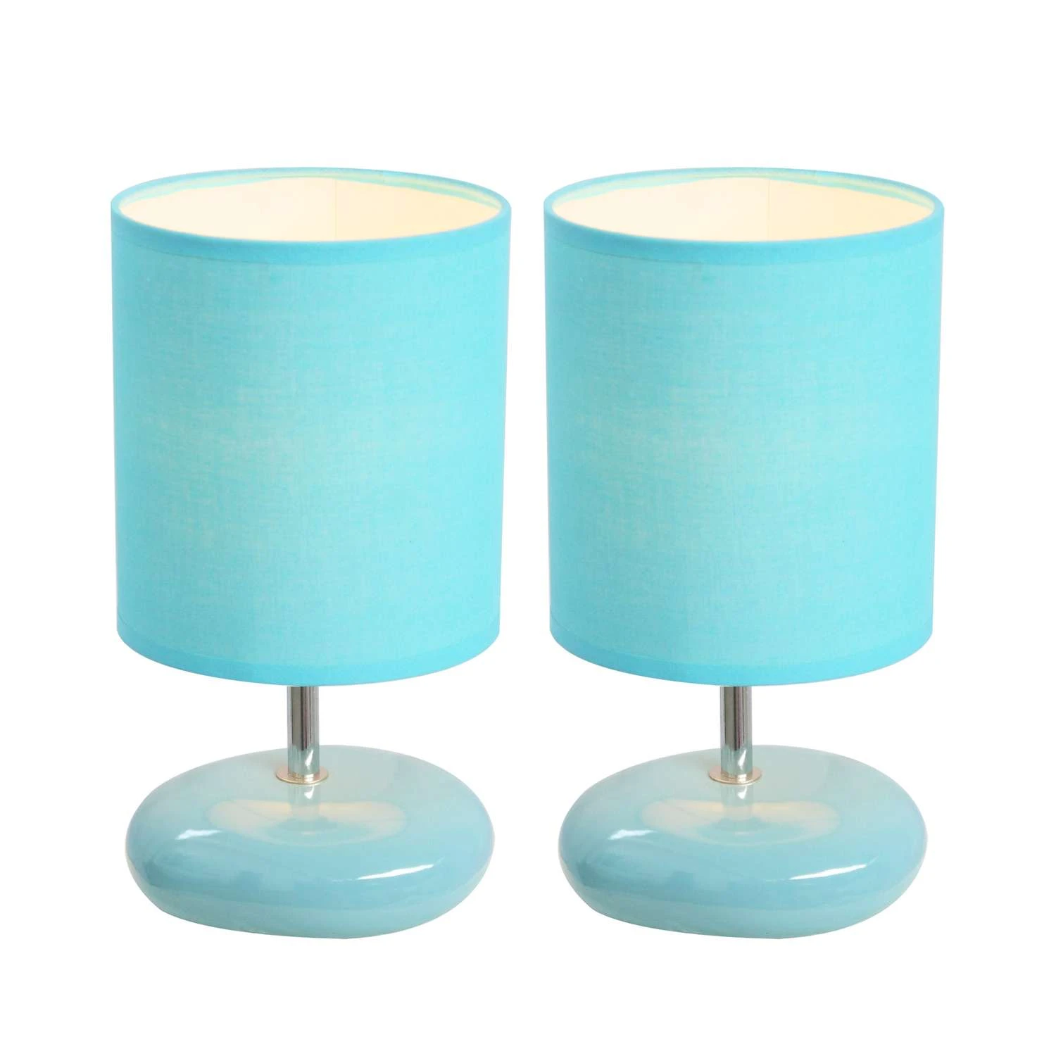 A fun, inexpensive, and practical table lamp set to meet your basic fashion lighting needs. These small lamps feature a stone shaped ceramic base and matching fabric shade. The compact size of these lamps make them the perfect bedside counterpart. 2 x Small stone shaped ceramic bases. 2 x Matching fabric shades. Perfect for bedroom, kids room, or college dorm. Each measures: Height: 10.63 inch shade diameter: 5.5 inch. Each uses 1 x 40W type B E12 candelabra base bulb (not included).