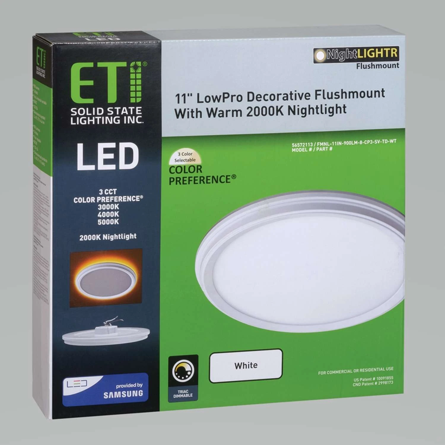 ETI 1.7 In. H X 11 In. W X 11 In. L White LED Ceiling Light Fixture With Nightlight