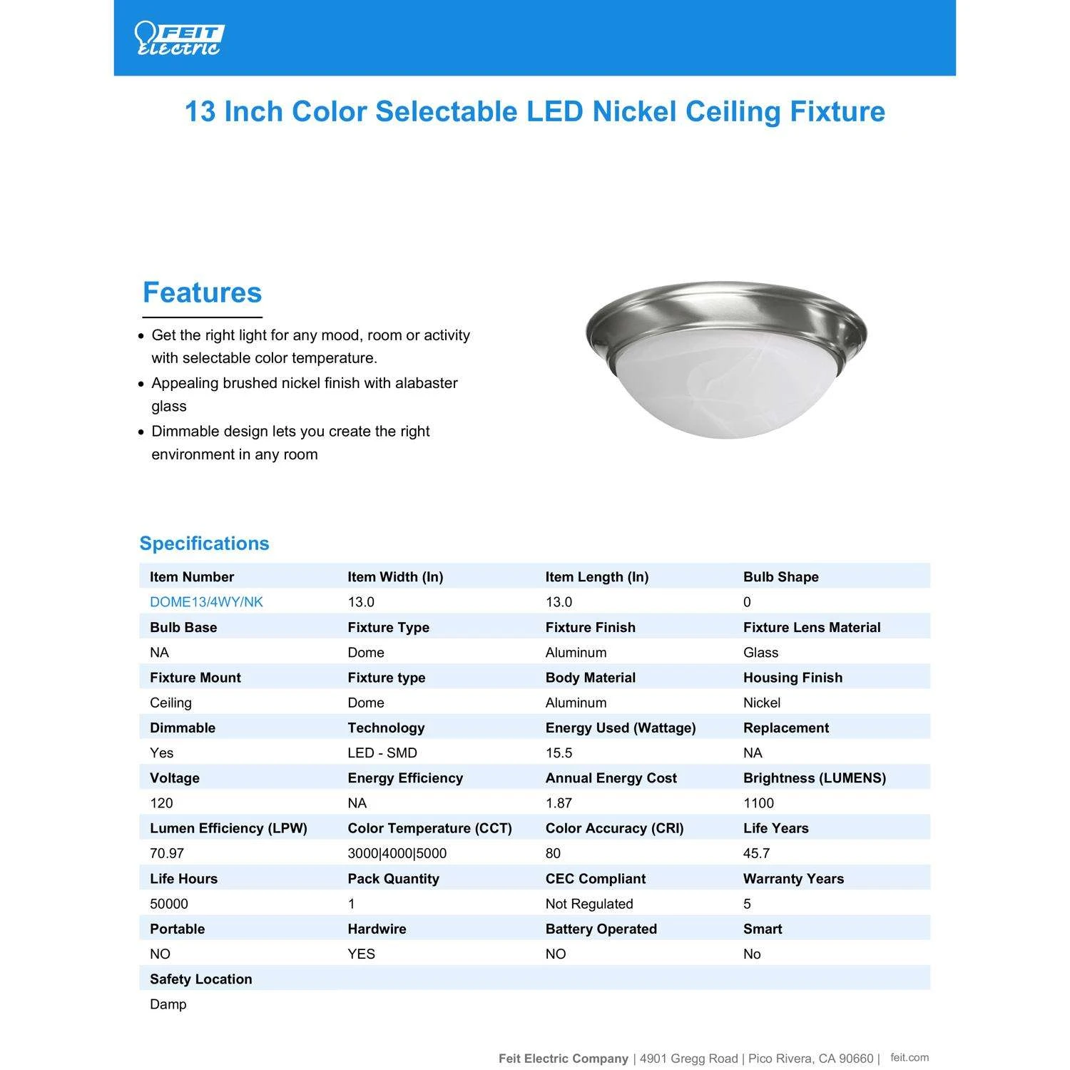 Feit 4.8 In. H X 13 In. W X 13 In. L Brushed Nickel White Ceiling Fixture