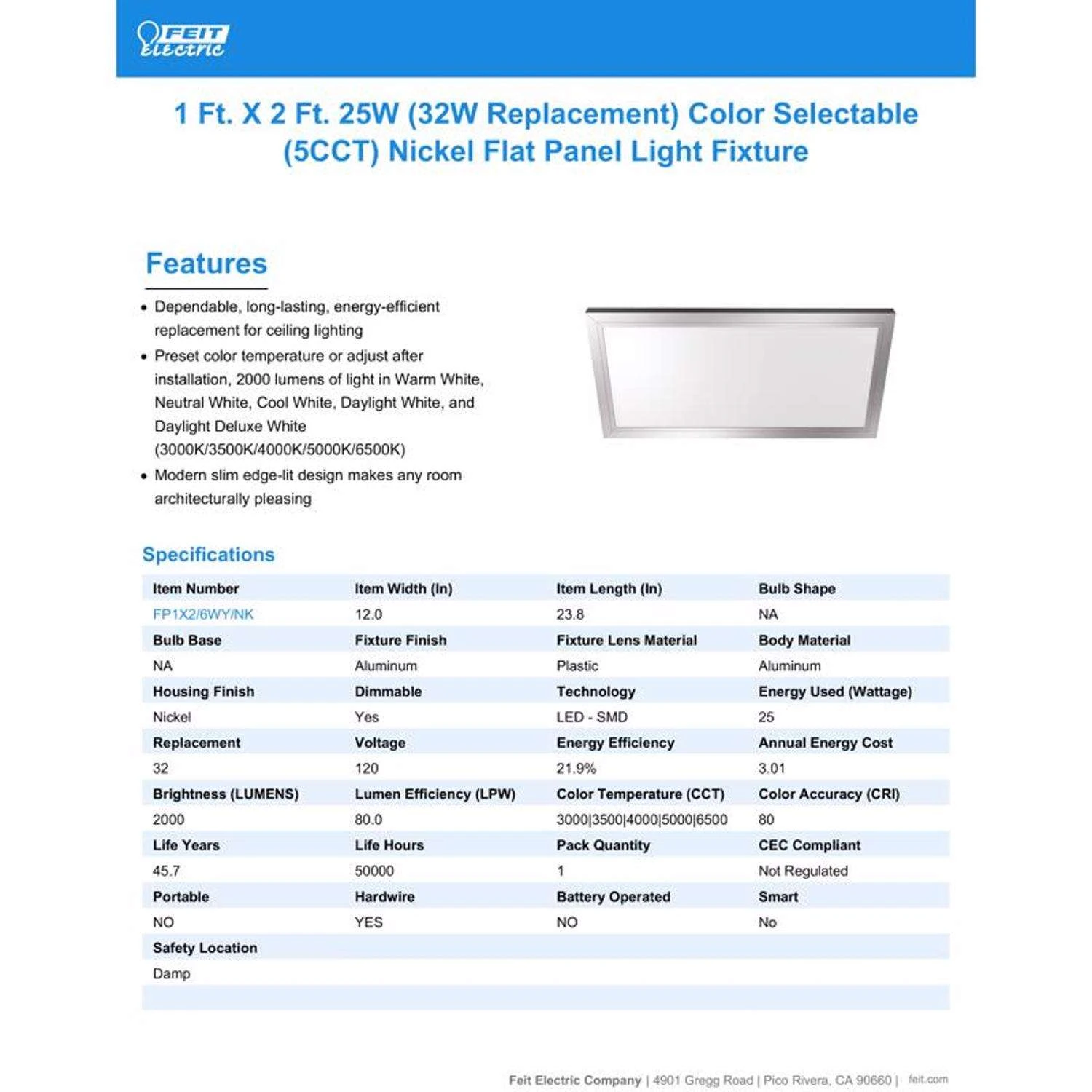 Be the first to review “Feit EDGELIT 1 In. H X 12 In. W X 23.8 In. L Brushed Nickel White LED Flat Panel Light Fixture” Cancel reply