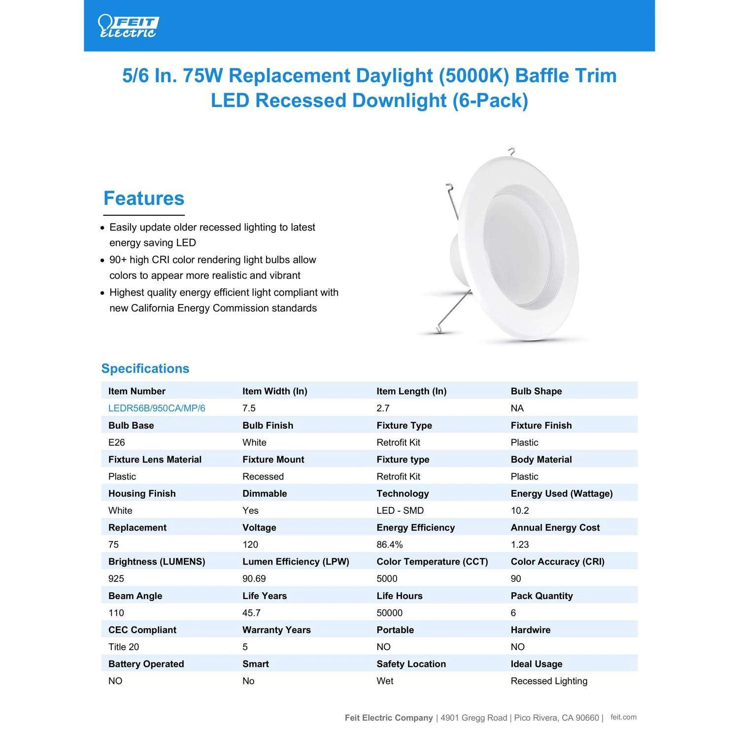 Be the first to review “Feit Enhance White 5-6 In. W LED Dimmable Recessed Downlight 10.2 W” Cancel reply