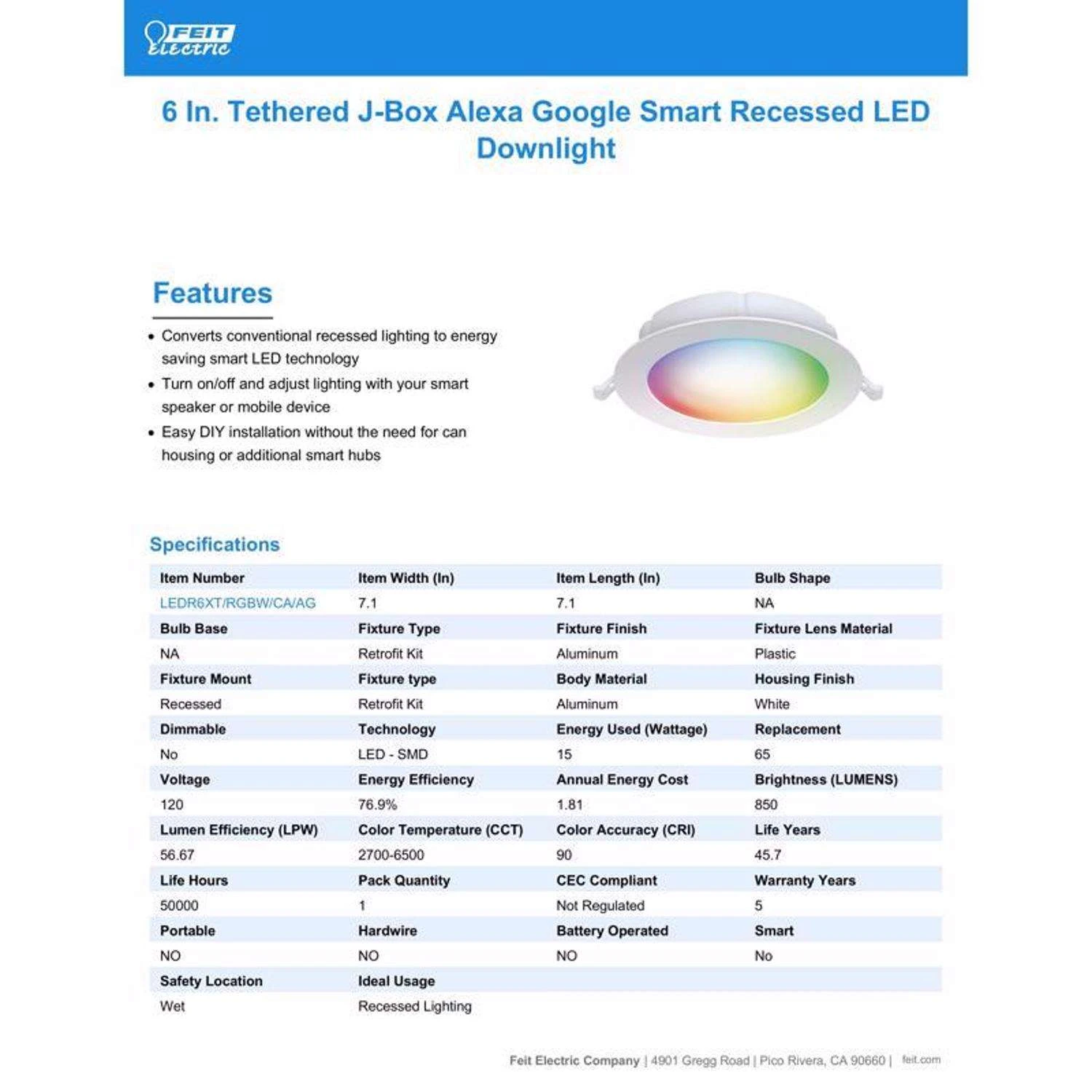 Feit Smart Home Frost White 6 In. W Aluminum LED Smart-Enabled Canless Recessed Downlight 15 W