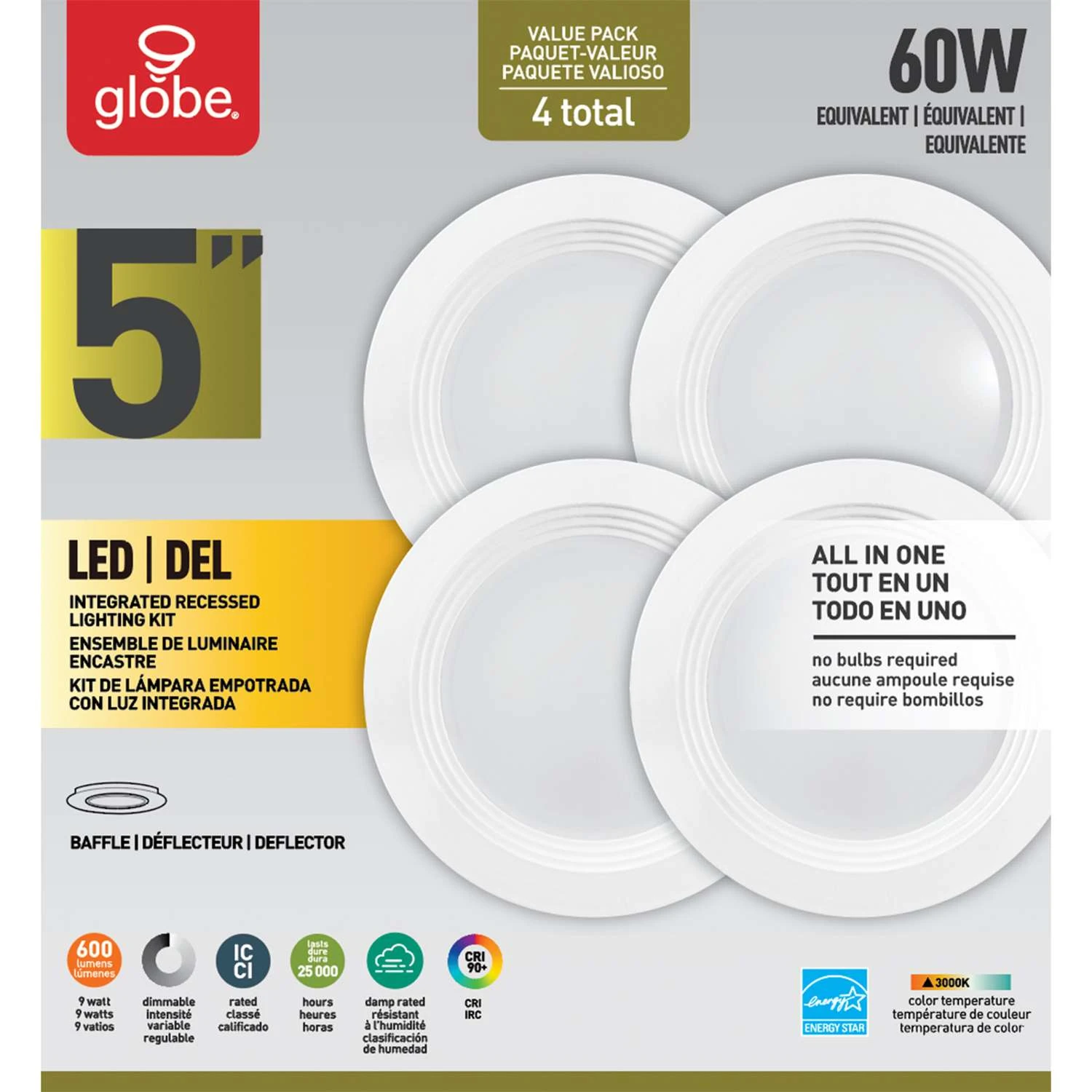 Be the first to review “Globe Electric Value 4 Pack White 5 In. W Plastic LED Canless Recessed Downlight 60 W” Cancel reply