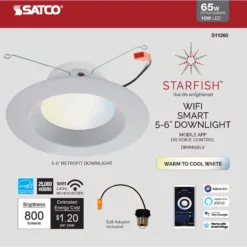 Satco Starfish White 5-6 In. W Metal LED Smart-Enabled Retrofit Recessed Lighting 10 W