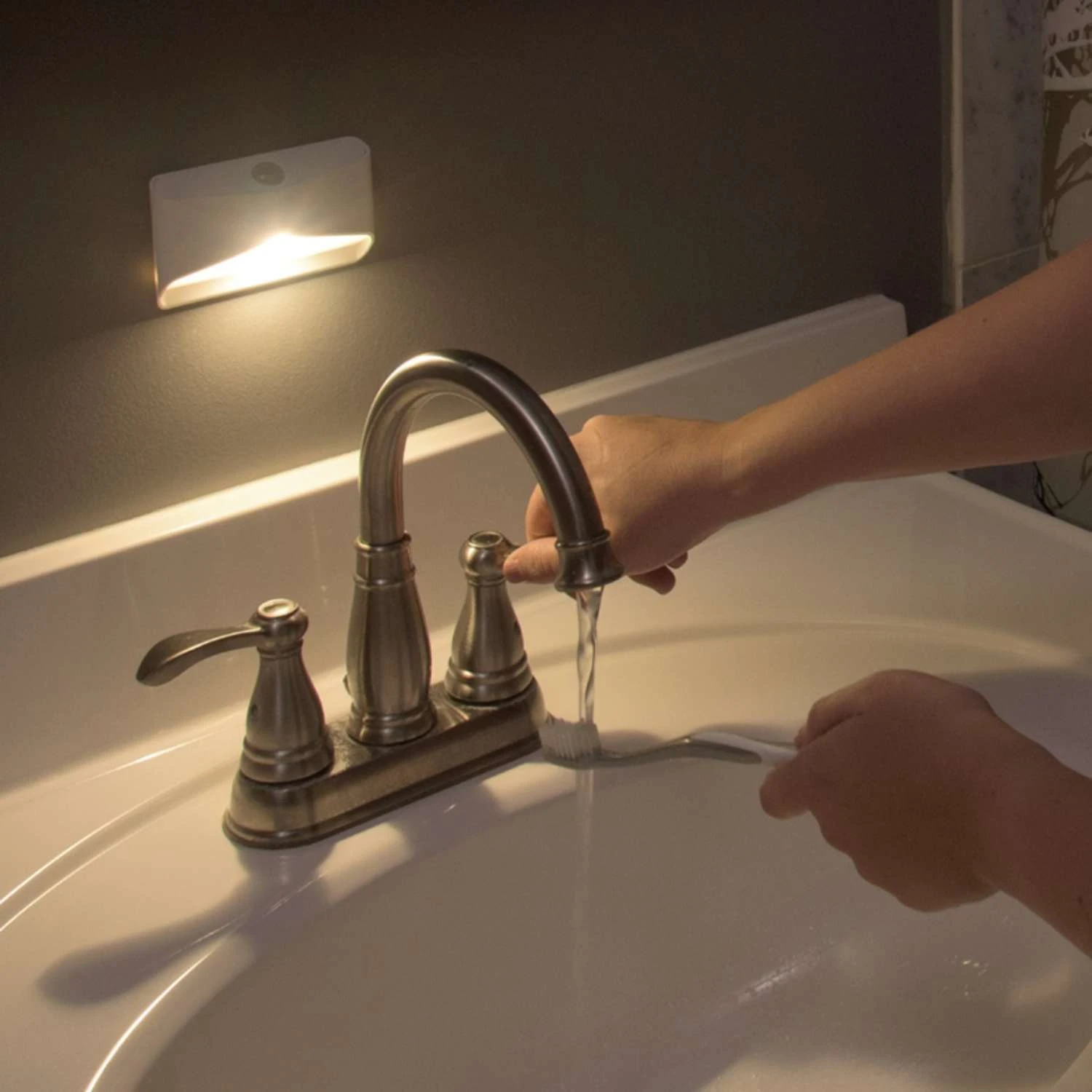 Mr. Beams LED Night Light for lighting near stairways, hallways and bathrooms 3200 Kelvin. Motion detection range of 10 ft. Auto shut off time is 30 seconds. Great for stairways, hallways and bathrooms. Uses 4 AAA batteries.