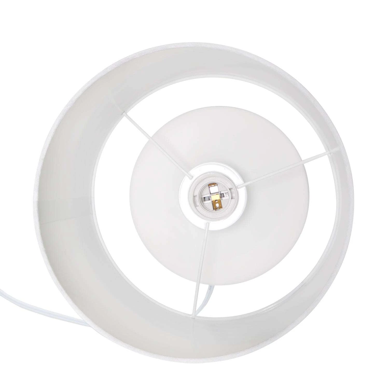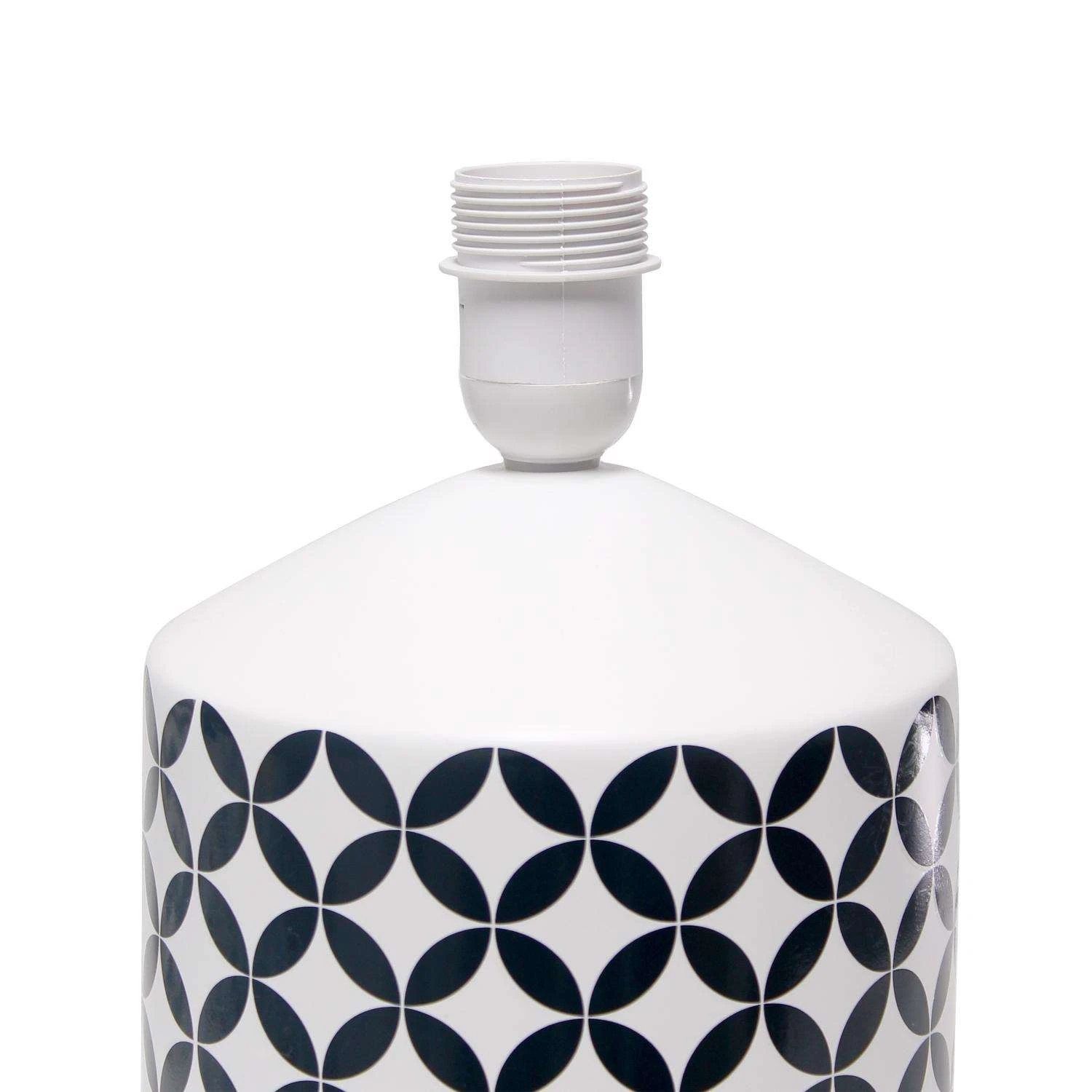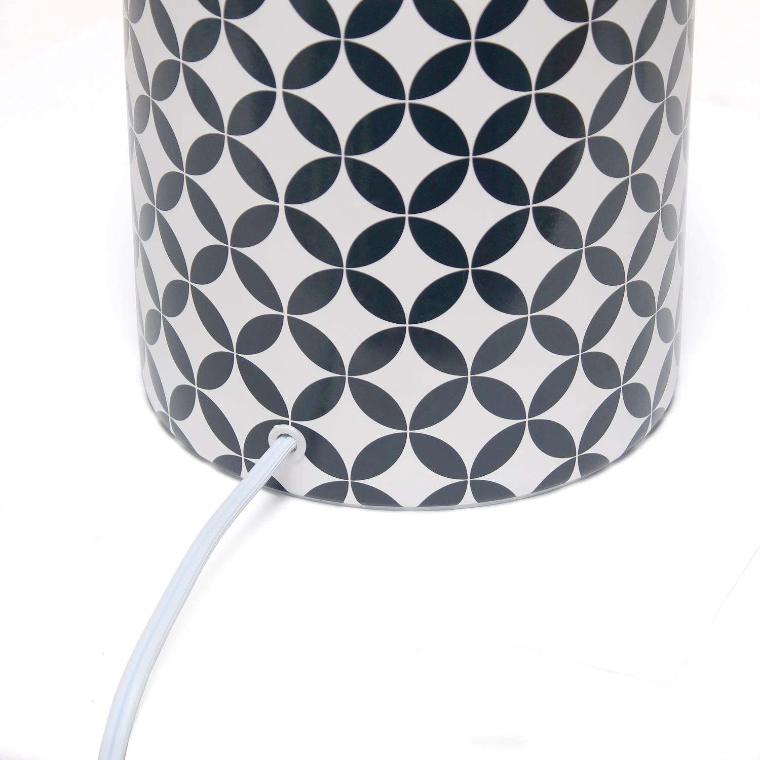 A repeating ripple pattern is the key element to this beautifully designed table lamp. A painted ceramic base is paired with a matching fabric shade to easily incorporate this lamp to your space. This versatile lamp is ideal for the nightstand in your bedroom, your office desk and even your entryway table. Perfect for living room, bedroom, kids room/nursery or college dorm Round fabric white shade Uses 1 x 60-watt type A medium based bulb (not included) Easily accessible on/ off switch located on the cord 5 ft. white plugin cord Number of options with different prints available