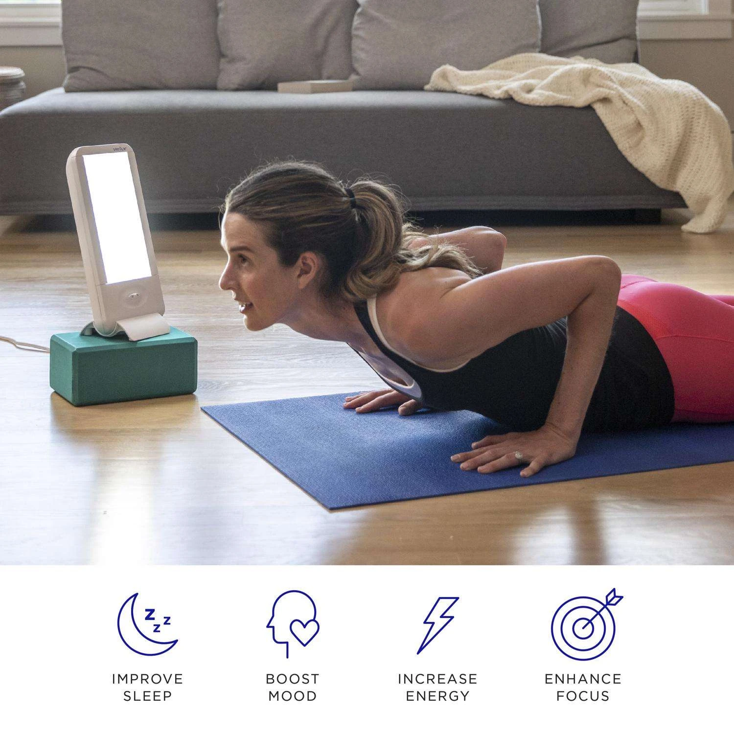 Sunlight is an essential ingredient for a healthy lifestyle, but many of us don’t get the amount of bright light we need to experience its benefits. The HappyLight Full-Size light therapy lamp safely brings daylight indoors by emitting a bright white light that mimics sunlight. Plug it in and get happy. The detachable stand allows you to use your HappyLight full-size wherever you need it or mount it on the wall in a convenient spot for your daily light therapy routine. Choose between 2 interchangeable lenses – high-energy and comfort optix glare-control lenses that lessen eye fatigue and strain. Ideal for late work shifts, office desk lighting, jetlag, sunlight deficiency and insomnia Simply turn it on with the easy touch controls and begin enjoying your light therapy session Evenly distributed bright light is UV-free with no glare, flicker or hot spots to provide you with an enjoyable light therapy experience Comes with a 36 watt full spectrum light bulb that is cool-burning and energy efficient